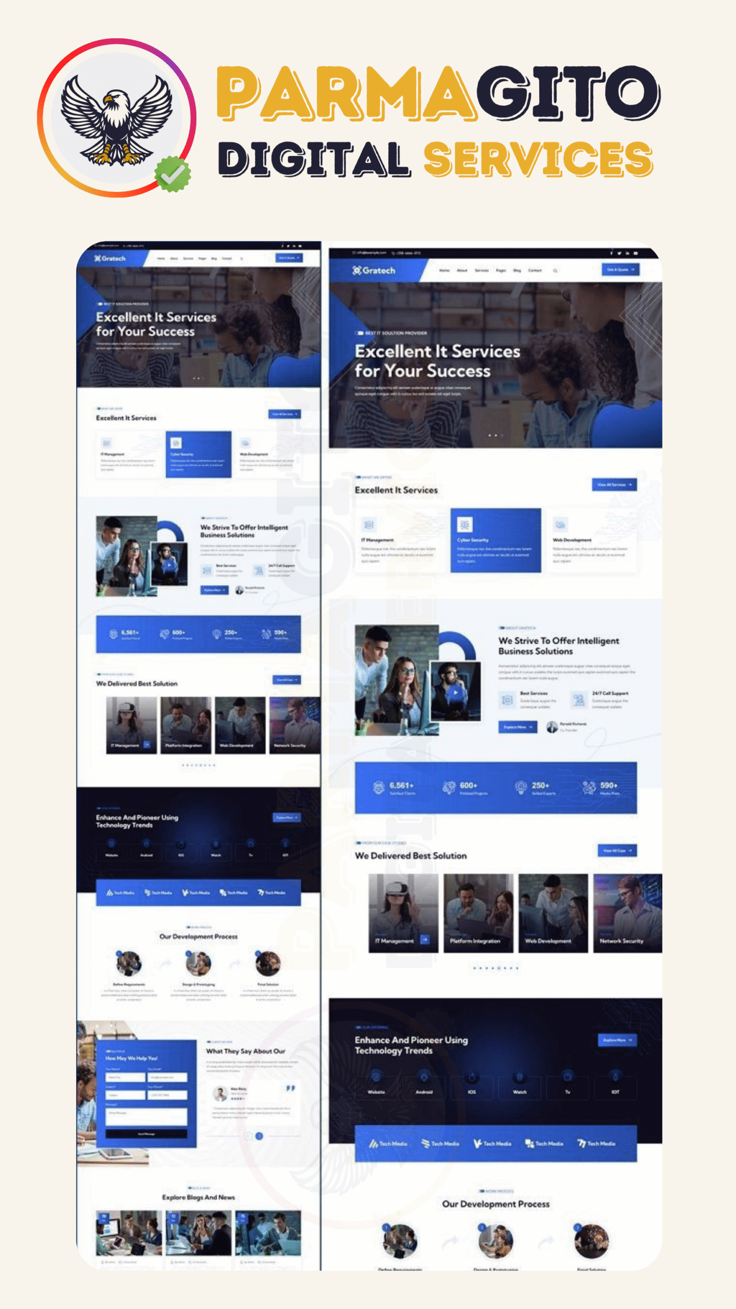 في Parmagito Digital Services نصمم مواقع إلكترونية عصرية وسريعة الاستجابة، تجمع بين الأداء العالي والتجربة المميزة. نقدّم حلول تسويق رقمي متكاملة واستراتيجيات SEO متقدمة تساعدك في تصدّر نتائج البحث، جذب عملاء جدد، وزيادة أرباحك بثقة واستمرارية.